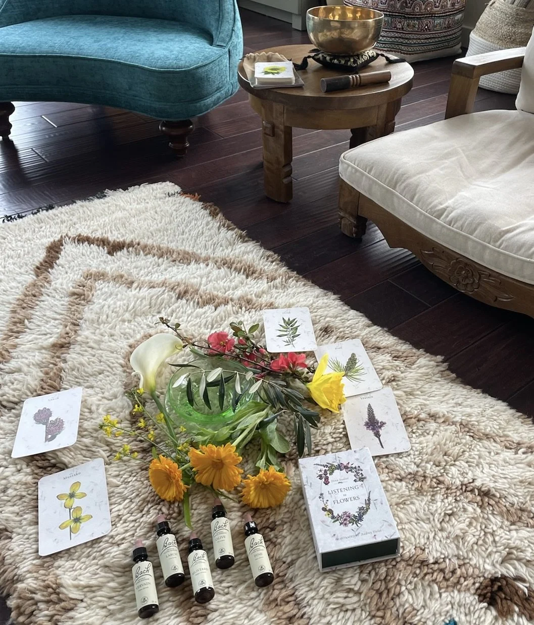 Dina leads guests through an array of activities that help shift limiting beliefs, and create personal empowerment, using the framework of flowers, and her “Listening to Flowers” oracle cards.